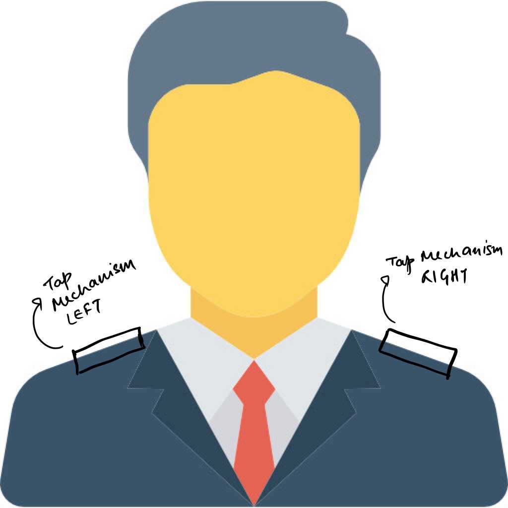 Design a tool/device that replicates a tap action on shoulder of the person wearing it. and guide the person to a direction. Whenever the person needs to turn left it replicates a tap on the shoulder and person moves in that direction. Similarly, for right direction, when a person needs to stop both left and right taps are triggered simultaneously indicating stop. If the destination is on the right, a rhythmic right tap is triggered to indicate the destination is on right.