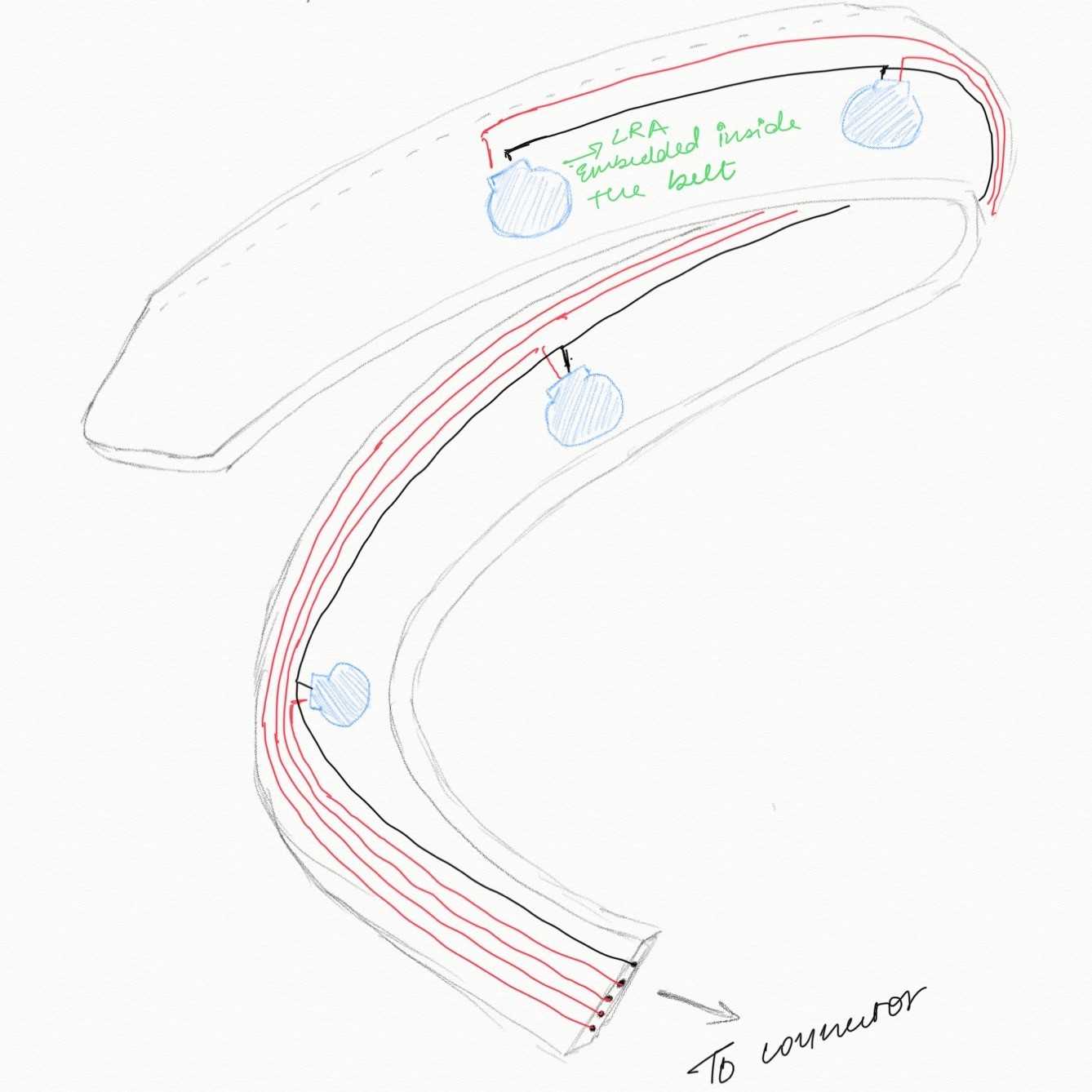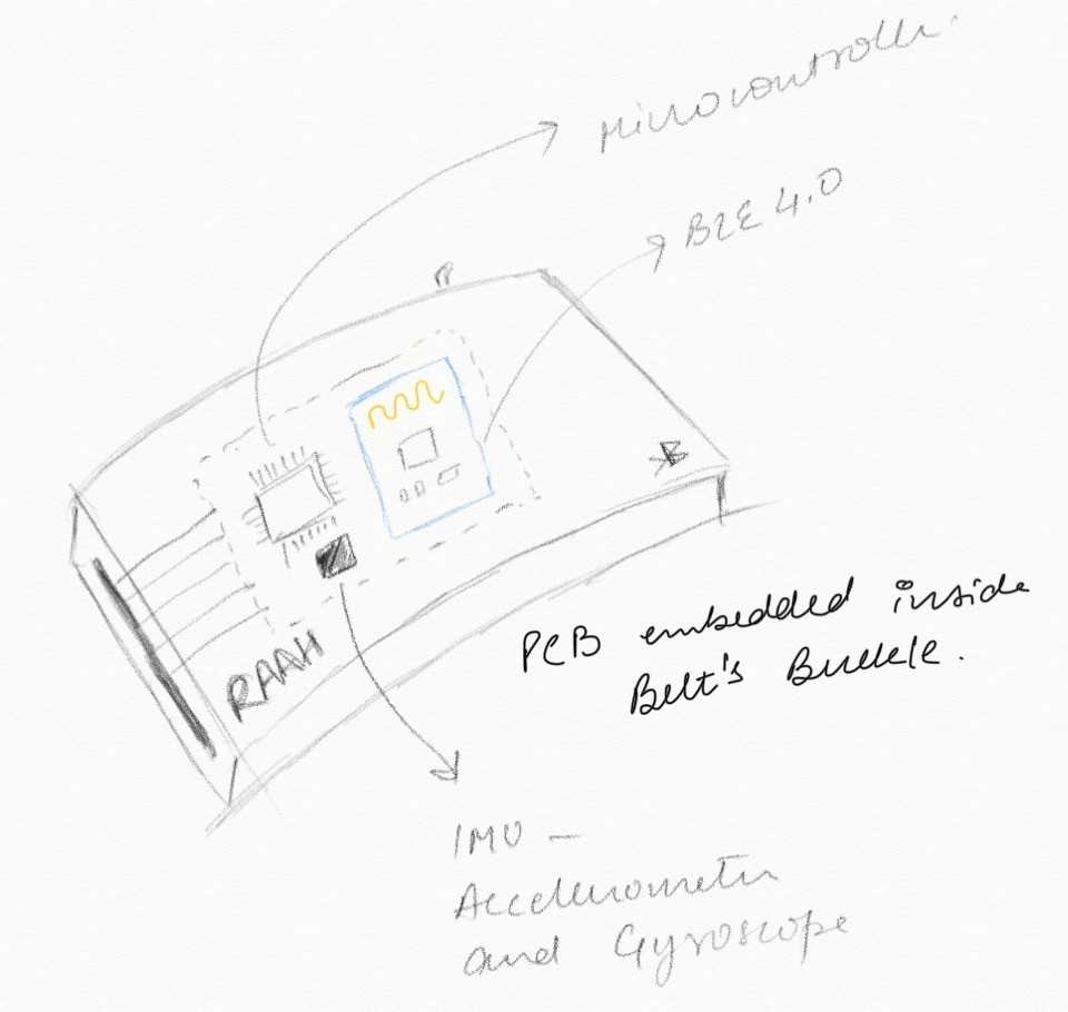 The idea is to embed 8 haptic feedback motors (or LRAs) sandwiched alongside the belt in all 8 directions on a compass along with a driving system which will be inside the belt’s buckle.